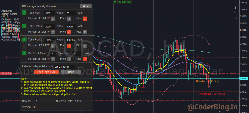 5.Show the auto TP1,2,3 target line in the chart, it will not show all TP lines in same time, just can show one by one